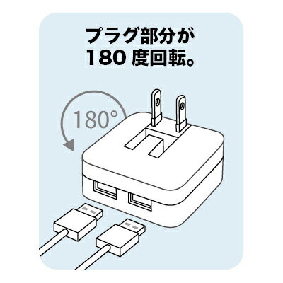 プラグ部分は180度回転するから、コンセントの差込口に合わせられるよ☆