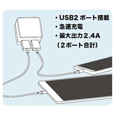 USB2ポート搭載で、スマホを2台同時に充電できるからオフィスや家庭での使用はもちろん、旅行や出張の時などにとっても便利◎デザインは全部で3種類!お気に入りを見つけよう♪